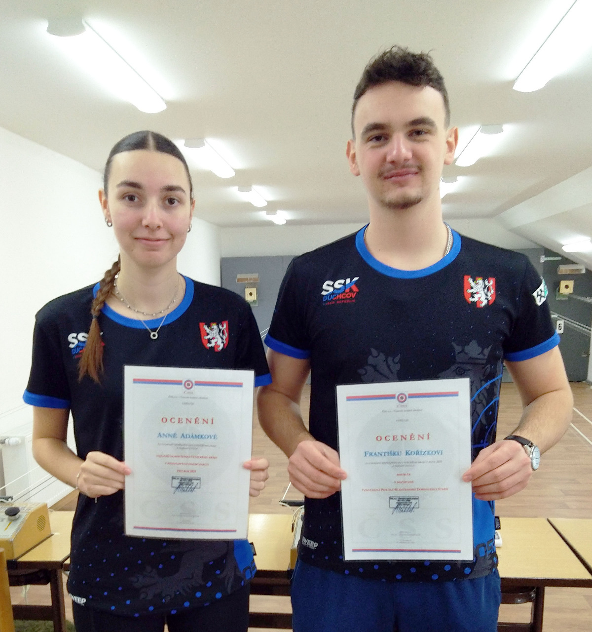 a třetí místo obsadil David Jun z Benešova. Vítězství na mistrovství republiky je obrovským úspěchem nejen samotného závodníka, ale i jejich trenéra, proto velké poděkování patří našemu trenérovi Zdeňku Hlaváčkovi, který svou trpělivostí, odborností a důsledným vedením, výrazně přispěl k úspěchům obou střelců. Děkujeme také všem našim příznivcům a fanouškům, kteří nám drželi palce. Oběma střelcům gratulujeme za jejich skvělé výkony a jsme rádi, že zanechali v tomto sportu krásný odkaz našeho klubu a města Duchcov.